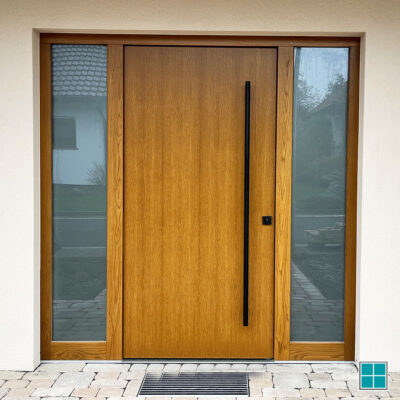 - Für besonders Eingangsbereiche können Haustüren in Raumhöhe oder mit flächenbündiger Optik gewählt werden.